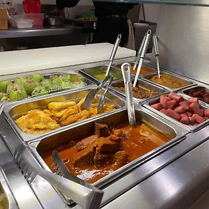 - Varied breakfast with custom omelettes available.